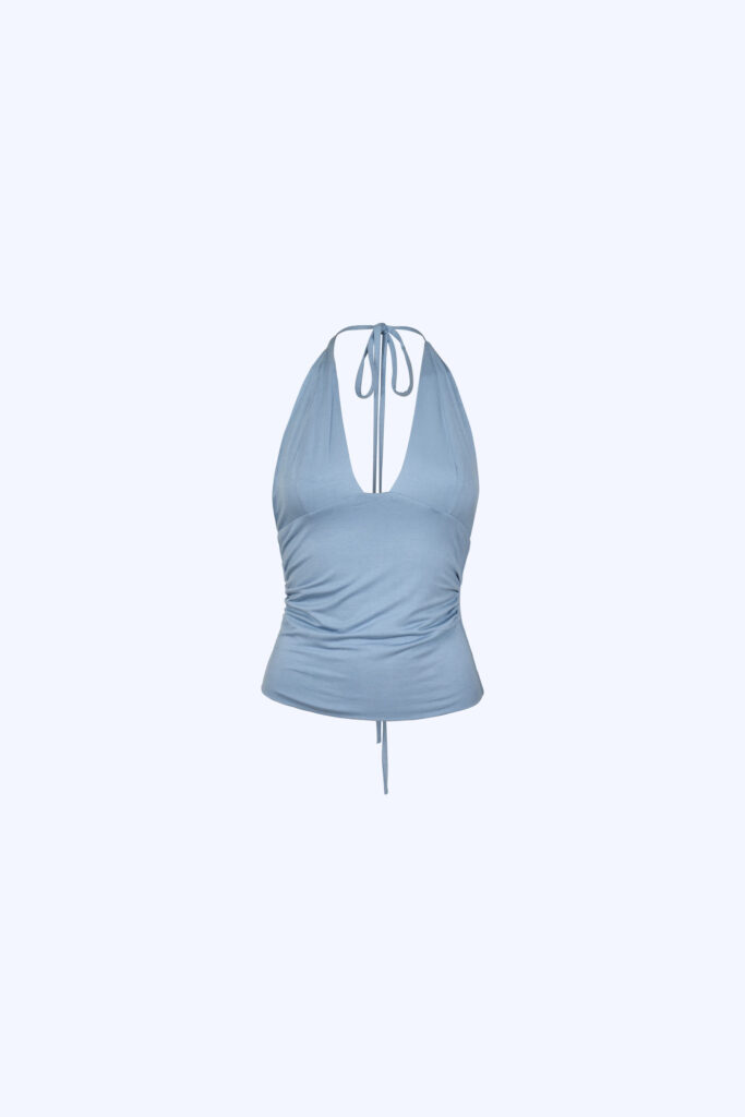 Halter V Neck top Blue